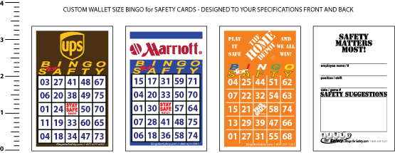 Customize these cards with your logo! Wallet size safety bingo cards are more convenient.